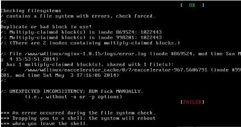 今天centos 启动时候出现错误,出现了an error occurred during the file system check提示,另外被告知要么输入root密码进行修复, 要么按ctrl+D跳过是文件系统出了错误。
