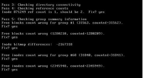 用fsck -y进行修复,都选yes就可以了。